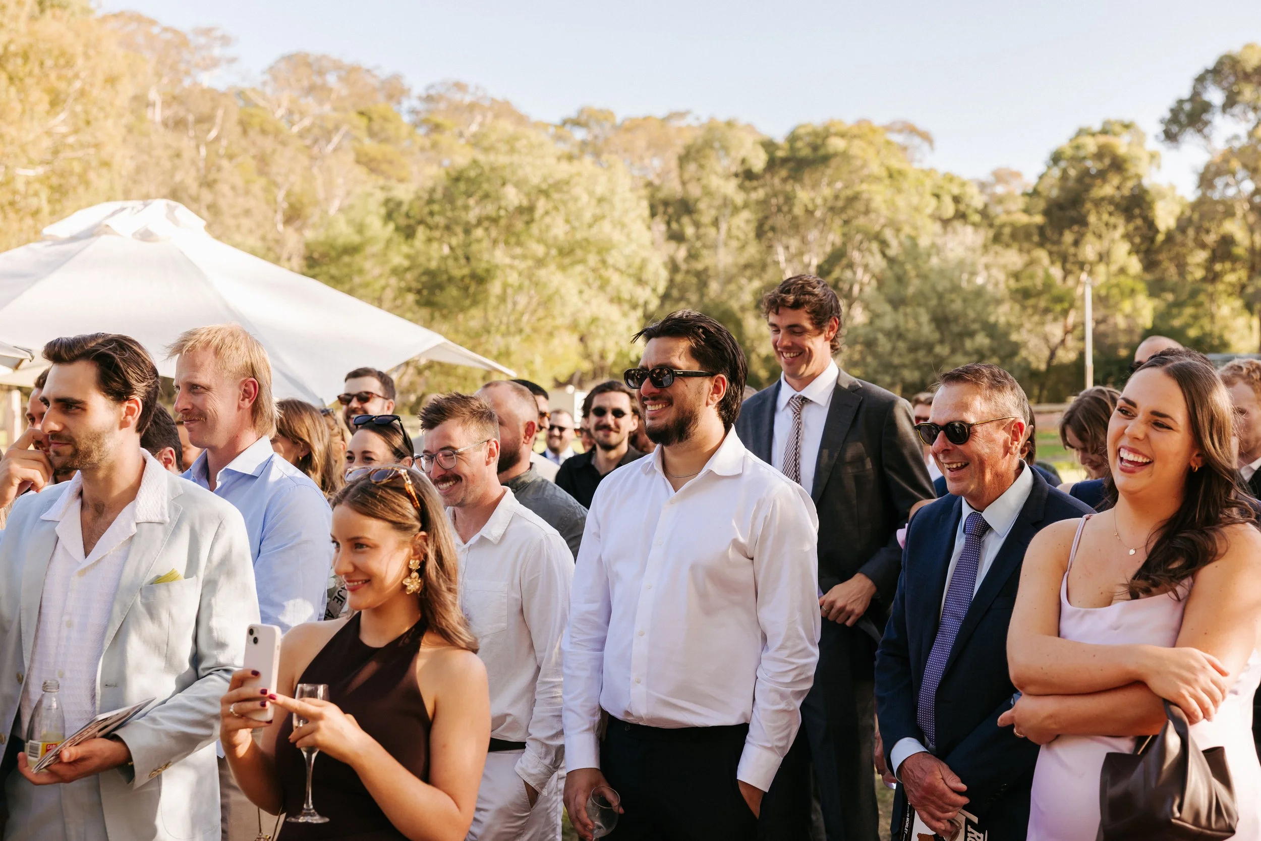 Lovely ceremony with their huge group of family and friends! Peep the customised footy record that has all the goss and shade thrown at all their guests (and themselves).